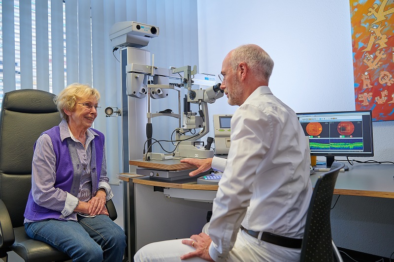 Eine wirksame Therapie für Glaukompatienten mit erhöhtem Augeninnendruck. Durch die schonende Laserbehandlung kann das Kammerwasser, welches für die Erhöhung des Augeninnendruckes verantwortlich ist, besser abfließen. Dadurch sinkt der Augeninnendruck. Die Behandlung dauert nur wenige Minuten und ist schmerzlos. Daher kann sie in unserer Praxis problemlos ambulant durchgeführt werden.